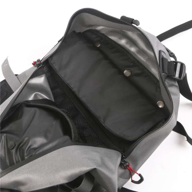Airflex Avid backpack. Vodoodporen nahrbtnik za muharjenje ali vijačenje. Narejen iz trpežne 100% vodoodporne tkanine 840 najlon poliuretana, z vodoodpornimi zadrgami. Nahrbtniku lahko dodate je sprednjo torbico Airflex-Avid-waist. Je univerzalni nahrbtnik s to prednostjo da je vodoodporen in izredno primeren za ribiške vodiče, saj se vanj lahko brez skrbi pospravi stvari ki morajo ostati suhe. Primeren za daljše ribolove pri muharjenju sploh pa nepogrešljiv pri vijačenju.