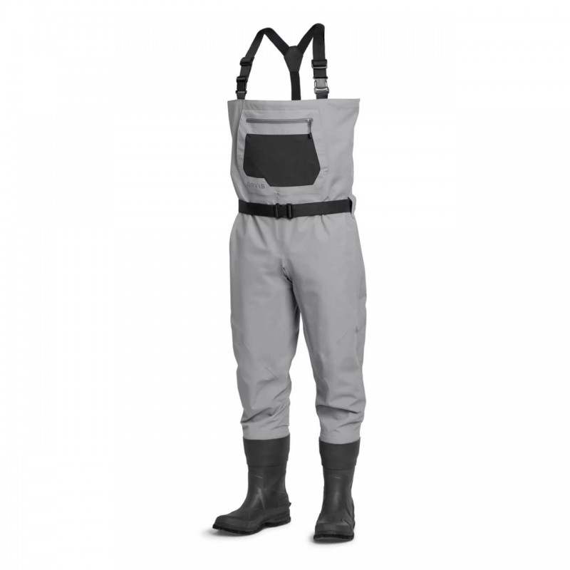 Clearwater Bootfoot so izjemna opcija hlačnih škornjev s podplatom iz klobučevine v posodobljenem sodobnem udobnem kroju. Štiriplastna vodoodporna zračna najlonska tkanina je lahka, a trpežna, z oceno vodotesnosti 30K/zračnosti 8K. Nasprotne stranske zaponke omogočajo preoblikovanje do pasu v toplih dneh. Neoprenski škornji iz vulkanizirane gume zagotavljajo optimalno toploto. Zunanji raztegljivi žep za shranjevanje majhnih predmetov in škatel za muhe ter grelni žep za roke v stilu kenguruja na prsnem košu. Nizkoprofilna šivna konstrukcija in nizkoprofilne zanke za pas z vključenim 11-palčnim pasom. Zaplata na kljukico in zanko na notranjem žepu za pritrditev vodoodpornega žepa Orvis (8G3H se prodaja ločeno).